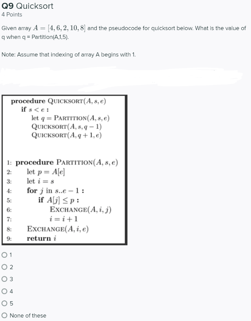 Q9 Quicksort 4 Points Given Array A 4 6 2 10 8 Chegg Com